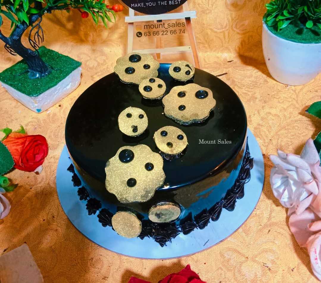 Product Details: Black & Gold Chocolate Type of Cake - Cream Weight- 1kg Shape- Round Note: If you need more than 2kg cakes you can call to our customer care number- ( Between 11Am to 8Pm) *For English- 63 66 22 66 73 *For Hindi- 63 66 22 66 76 *For Malayalam-63 66 22 66 74 *For Kannada- 72 04 98 49 17 Please Note: •The cake stand, cutlery & accessories used in the image are only for representation purposes. They are not delivered with the cake. •This cake is hand delivered in a Food Grade Cardboard box. Care Instructions: •Store cream cakes in a refrigerator. •Slice and serve the cake at room temperature and make sure it is not exposed to heat. •Use a serrated knife to cut a fondant cake. •The cake should be consumed within 3Days. Enjoy your Cake!