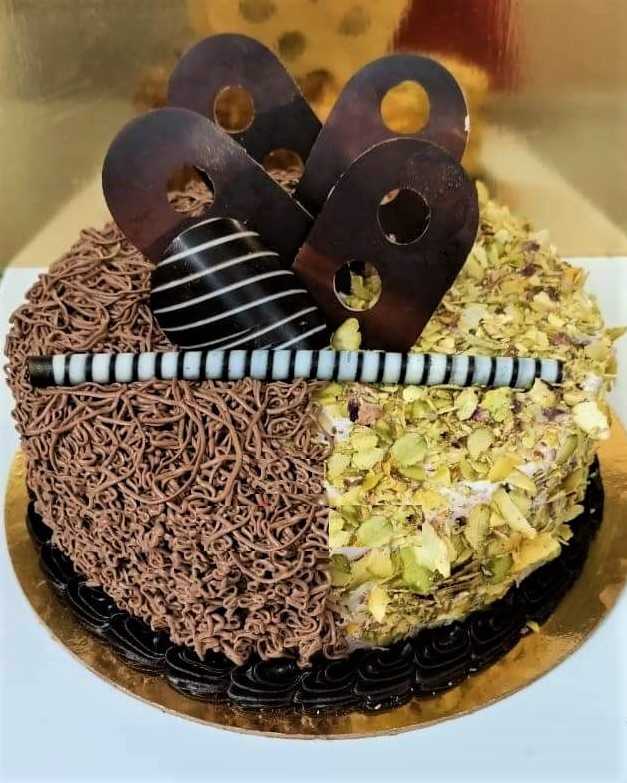 Product Details: Cake Flavor- Chocolate Pista Cake Type of Cake- Cream Quantity-1kg Shape- Round Note: If you need more than 2kg cakes you can call to our customer care number- *For English- 63 66 22 66 73 *For Hindi- 63 66 22 66 76 *for Malayalam- 63 66 22 66 74 *For Kannada- 72 04 98 49 17 ( Between 11Am to 8Pm) Care Instructions: * Store cream cakes in a refrigerator. * Slice and serve the cake at room temperature and make sure it is not exposed to heat. * Use a serrated knife to cut a fondant cake.. *The cake should be consumed within 3Days. Please Note: •The cake stand, cutlery & accessories used in the image are only for representation purposes. They are not delivered with the cake. •This cake is hand delivered in a Food Grade cardboard box. Enjoy your cake!