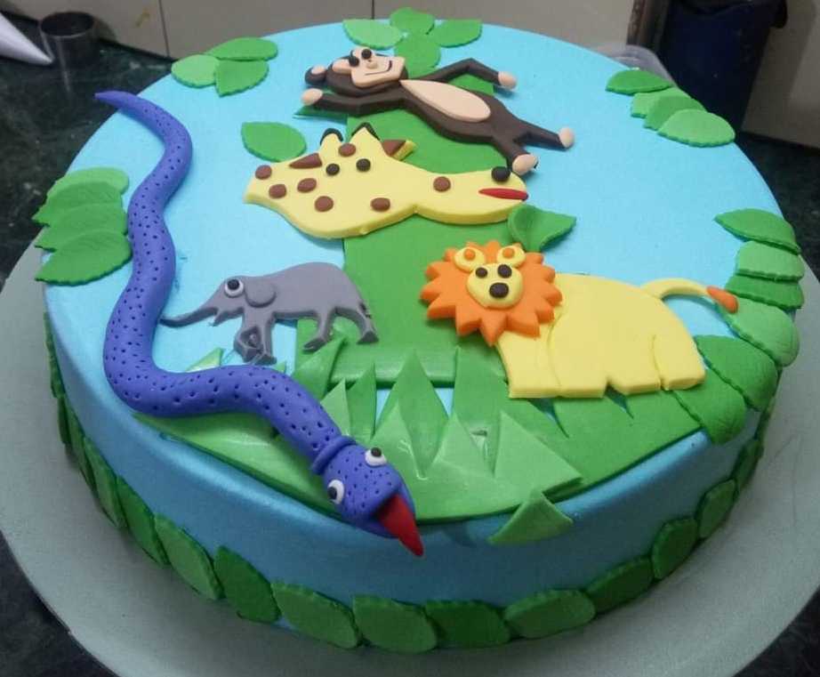 Jungle Cake is handcrafted and prepared fresh by the Chef. The cake is prepared with utmost care and hygiene. Product Details: Weight- 2kg Note: If you need more than 2kg cakes you can call to our customer care number- *For English- 63 66 22 66 73 *For Hindi- 63 66 22 66 76 *For Malayalam-63 66 22 66 74 *For Kannada- 72 04 98 49 17 Care Instructions: * Store cream cakes in a refrigerator. * Slice and serve the cake at room temperature and make sure it is not exposed to heat. * Use a serrated knife to cut a fondant cake. *The cake should be consumed within 3Days. Please Note: •The cake stand, cutlery & accessories used in the image are only for representation purposes. They are not delivered with the cake. •This cake is hand delivered in a Food Grade Cardboard box. Enjoy your cake!