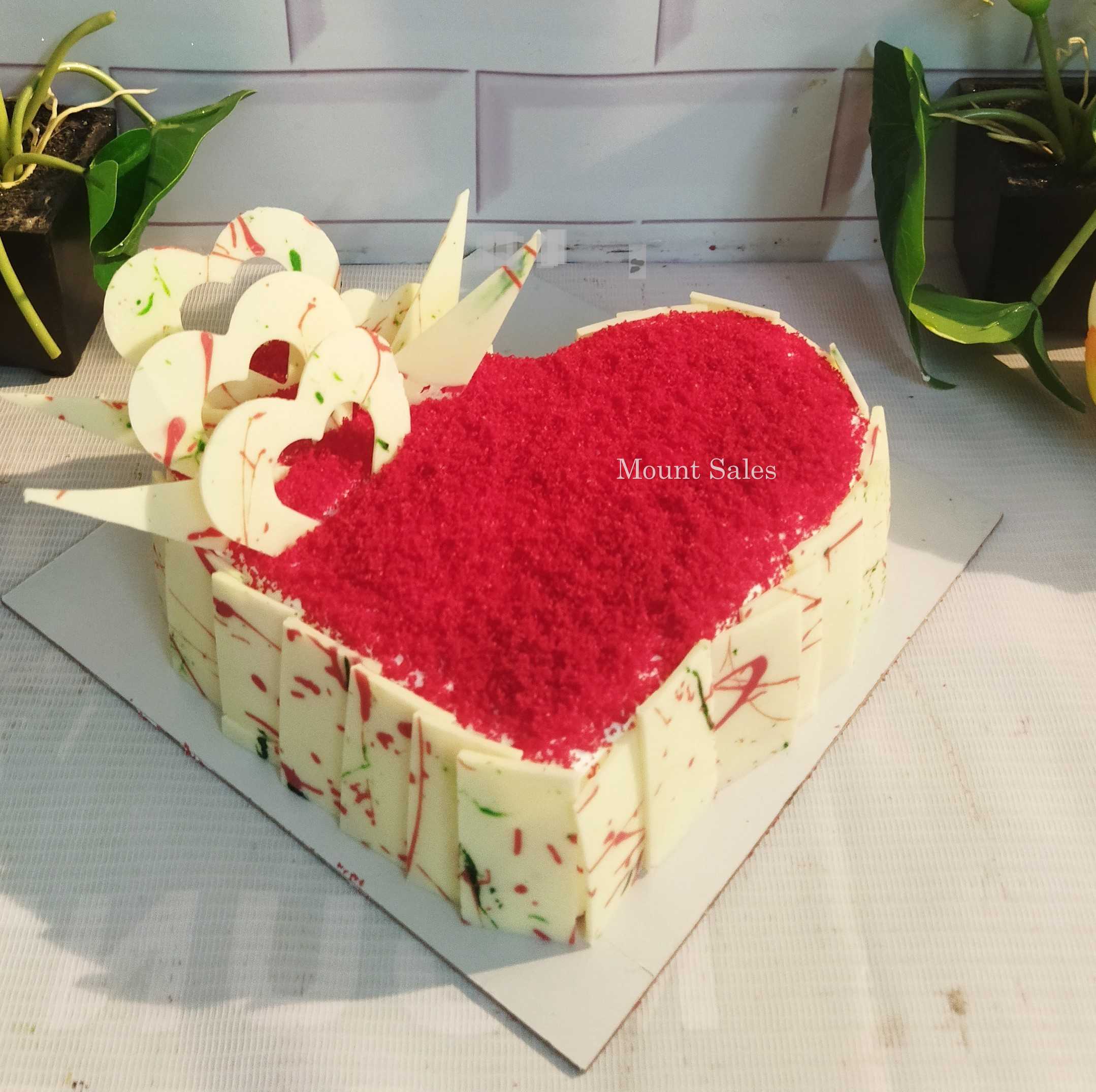 Product Details: • Cake Flavor- Red Velvet • Type of Cake- Cream • Weight- 1Kg • Shape- Heart Note: If you need more than 2kg cakes you can call to our customer care number- *For English- 63 66 22 66 73 *For Hindi- 63 66 22 66 76 *For Malayalam- 63 66 22 66 74 *For Kannada- 72 04 98 49 17 CARE INSTRUCTIONS: * Store cream cakes in a refrigerator. * Slice and serve the cake at room temperature and make sure it is not exposed to heat. * Use a serrated knife to cut a fondant cake. *The cake should be consumed within 3Days. Please Note: • The cake stand, cutlery & accessories used in the image are only for representation purposes. They are not delivered with the cake. •This cake is hand delivered in a Food Grade Cardboard box. •The icing, design of the cake may vary from the image depending upon local availability. Enjoy your cake!