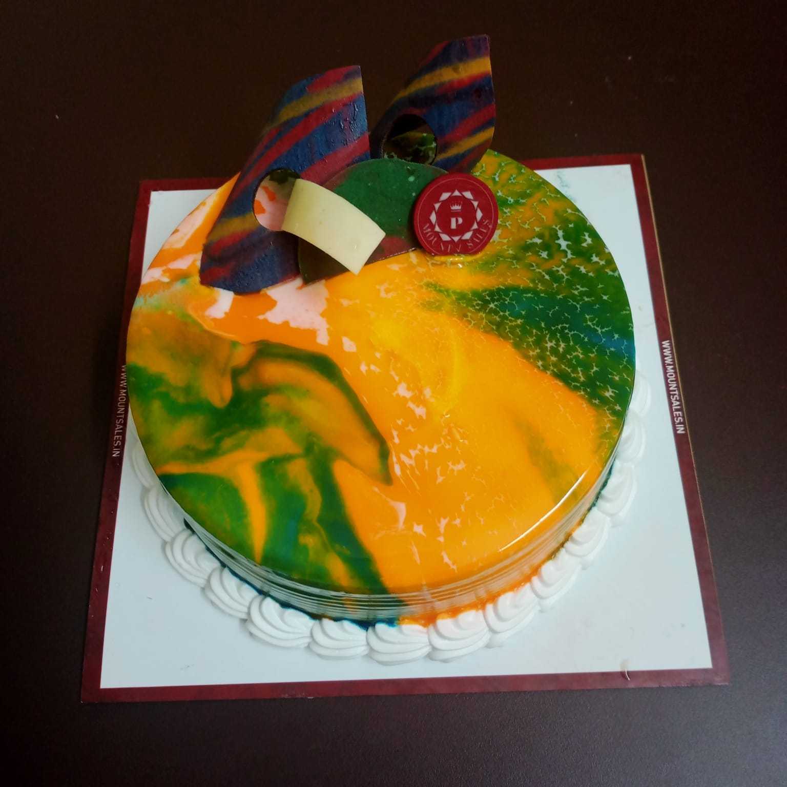 Product Details: Cake Flavor- mango Shape- Round Weight- 1kg Note: If you need more than 2kg cakes you can call to our customer care number- *For English- 63 66 22 66 73 *For Hindi- 63 66 22 66 76 *For Malayalam-63 66 22 66 74 *For Kannada- 72 04 98 49 17 Care Instructions: * Store cream cakes in a refrigerator. * Slice and serve the cake at room temperature and make sure it is not exposed to heat. * Use a serrated knife to cut a fondant cake. *The cake should be consumed within 3Days. Please Note: •The cake stand, cutlery & accessories used in the image are only for representation purposes. They are not delivered with the cake. •This cake is hand delivered in a Food Grade Cardboard box. Enjoy your cake!