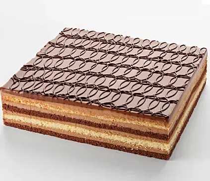 Opera Cake is a French Cake. It is made with layers of almond sponge cake soaked in coffee syrup and covered in a chocolate glaze. Product Details: *Opera Cream Cake *Weight-2kg * Shape: Square * Flavor- Chocolate Note: If you need more than 2kg cakes you can call to our customer care number- *For English- 63 66 22 66 73 *For Hindi- 63 66 22 66 76 *For Malayalam-63 66 22 66 74 *For Kannada- 72 04 98 49 17 Care Instructions: * Store cream cakes in a refrigerator. * Slice and serve the cake at room temperature and make sure it is not exposed to heat. * Use a serrated knife to cut a fondant cake. *The cake should be consumed within 3Days. Please Note: •The cake stand, cutlery & accessories used in the image are only for representation purposes. They are not delivered with the cake. •This cake is hand delivered in a Food Grade Cardboard box. Enjoy your cake!