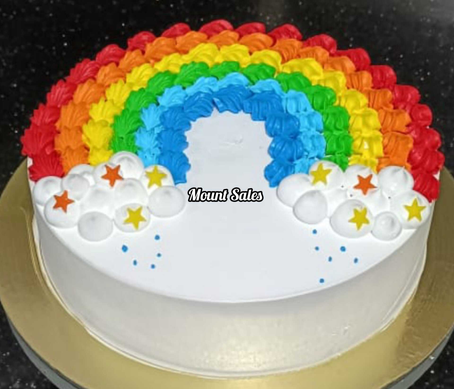 Product Details: Cake Flavor- Rainbow Type of Cake - Cream Weight- 2kg Shape- Round Note: If you need more than 2kg cakes you can call to our customer care number- ( Between 11Am to 8Pm) *For English- 63 66 22 66 73 *For Hindi- 63 66 22 66 76 *For Malayalam-63 66 22 66 74 *For Kannada- 72 04 98 49 17 Please Note: •The cake stand, cutlery & accessories used in the image are only for representation purposes. They are not delivered with the cake. •This cake is hand delivered in a Food Grade Cardboard box. Care Instructions: •Store cream cakes in a refrigerator. •Slice and serve the cake at room temperature and make sure it is not exposed to heat. •Use a serrated knife to cut a fondant cake. •The cake should be consumed within 3Days. Enjoy your Cake!